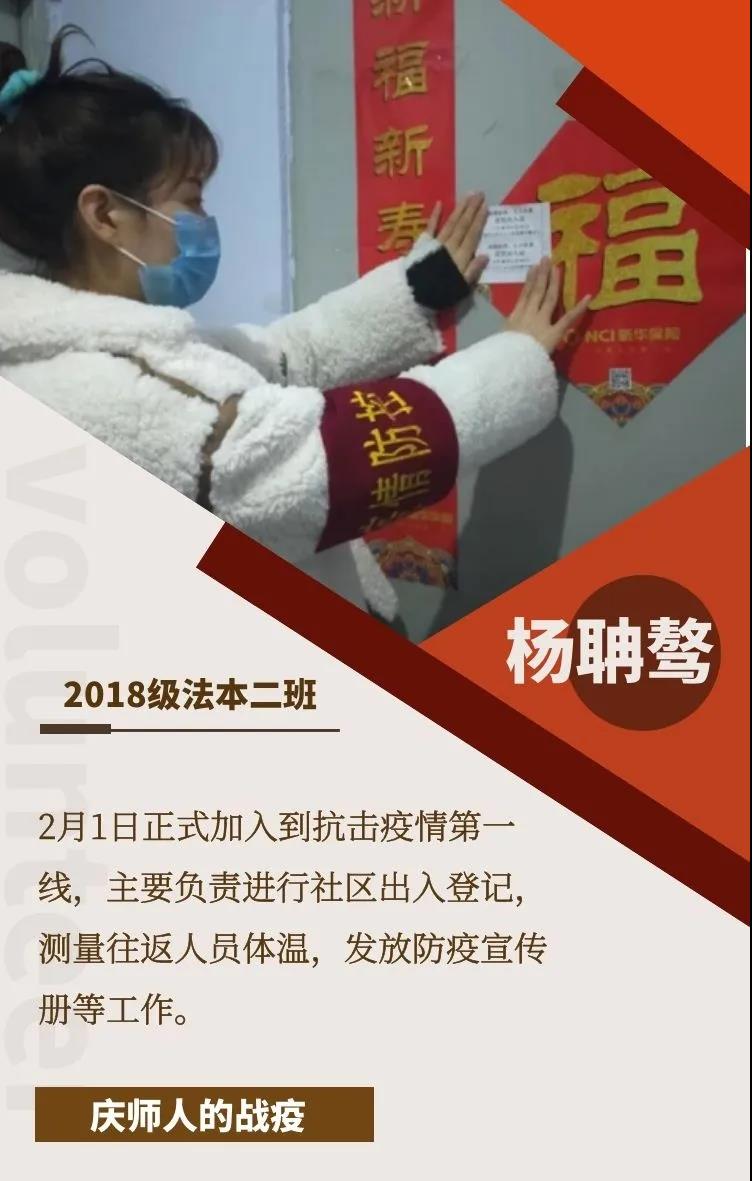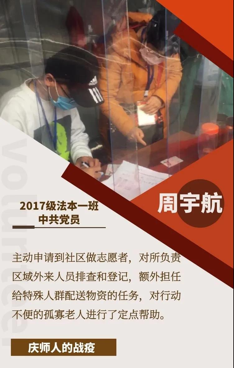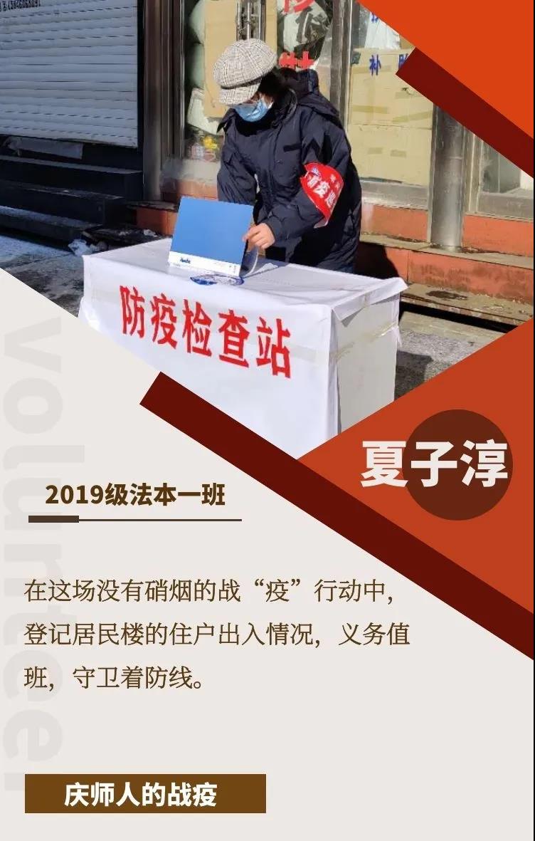 有一群庆师青年,他们自觉担当,主动出击,毅然投身这场艰难的战役中,他们就是可爱的志愿者们。