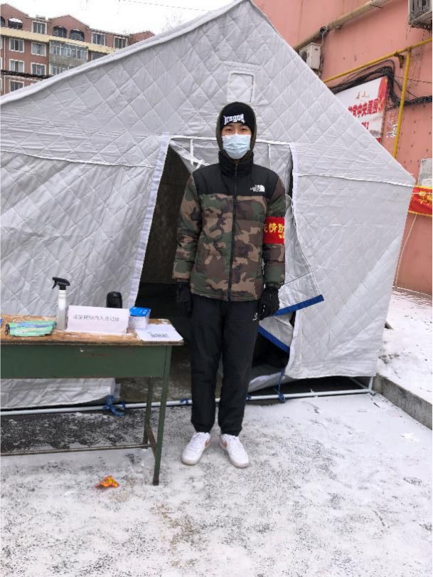 体育学院2018级社会体育指导与管理专业一班学生。主动加入黑河市爱辉区益民一区疫情防控志愿服务工作。主要负责检查来往的车辆和人员、登记车牌号、测量体温,给各家各户发放通行证。