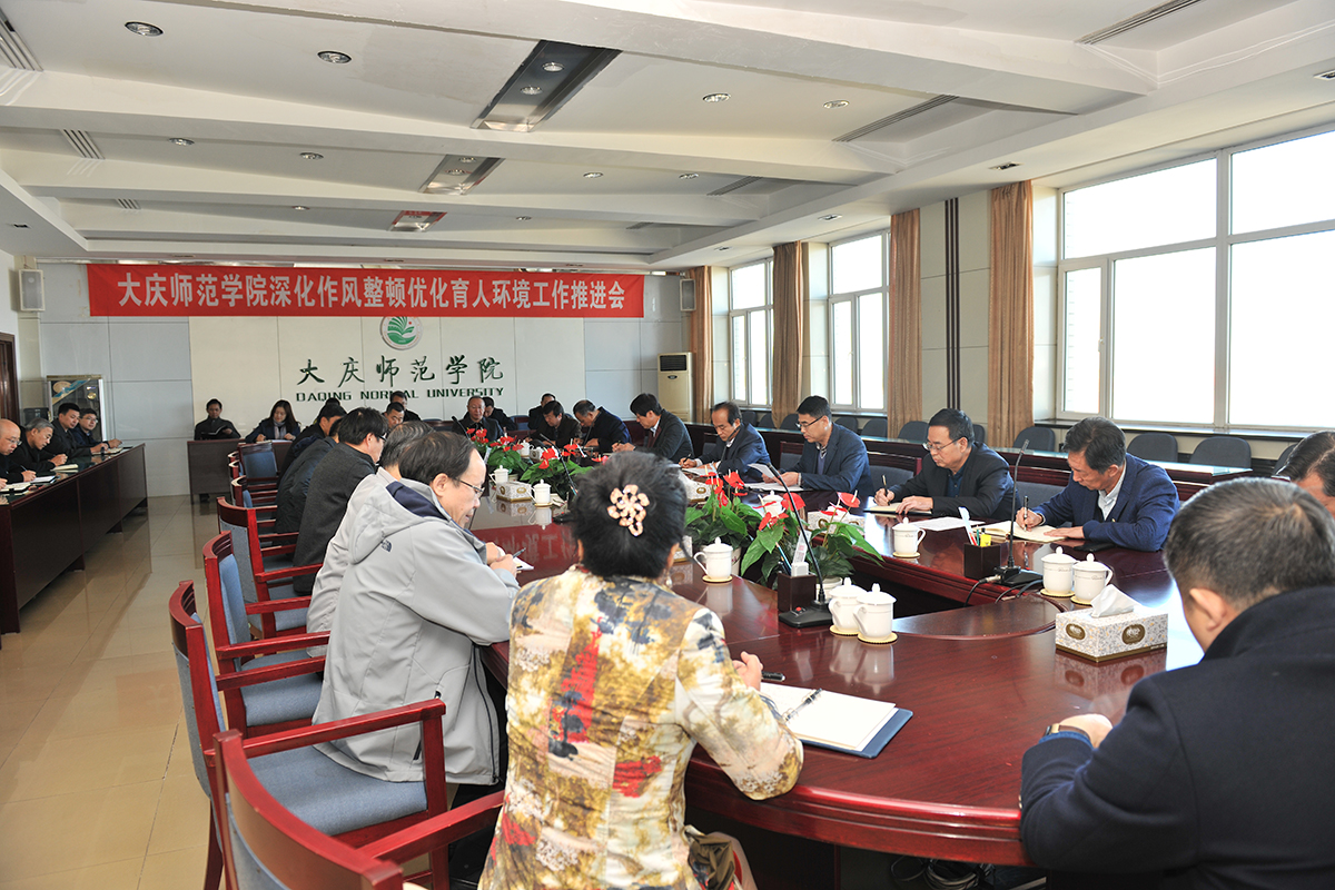 为深入贯彻落实全省深化机关作风整顿优化营商环境工作暨警示教育会议精神,进一步深化作风整顿优化育人环境,按照学校党委部署,10月14日学校在主楼729会议室召开深化作风整顿优化育人环境工作推进会。学校党委副书记王革,机关各部门负责人,机关党支部书记,基层单位党总支书记参加会议。会议由校党委委员、党委组织部部长艾连北主持。