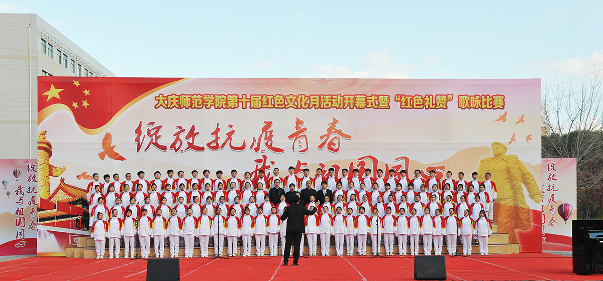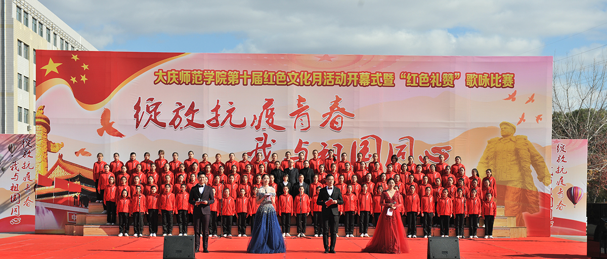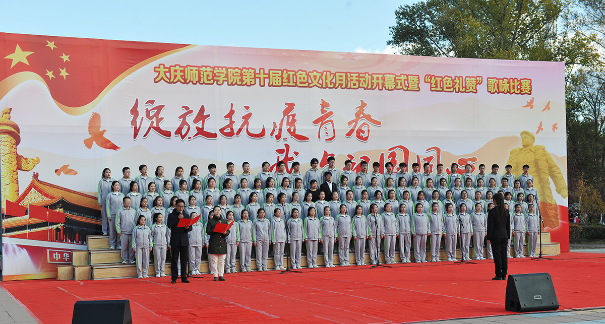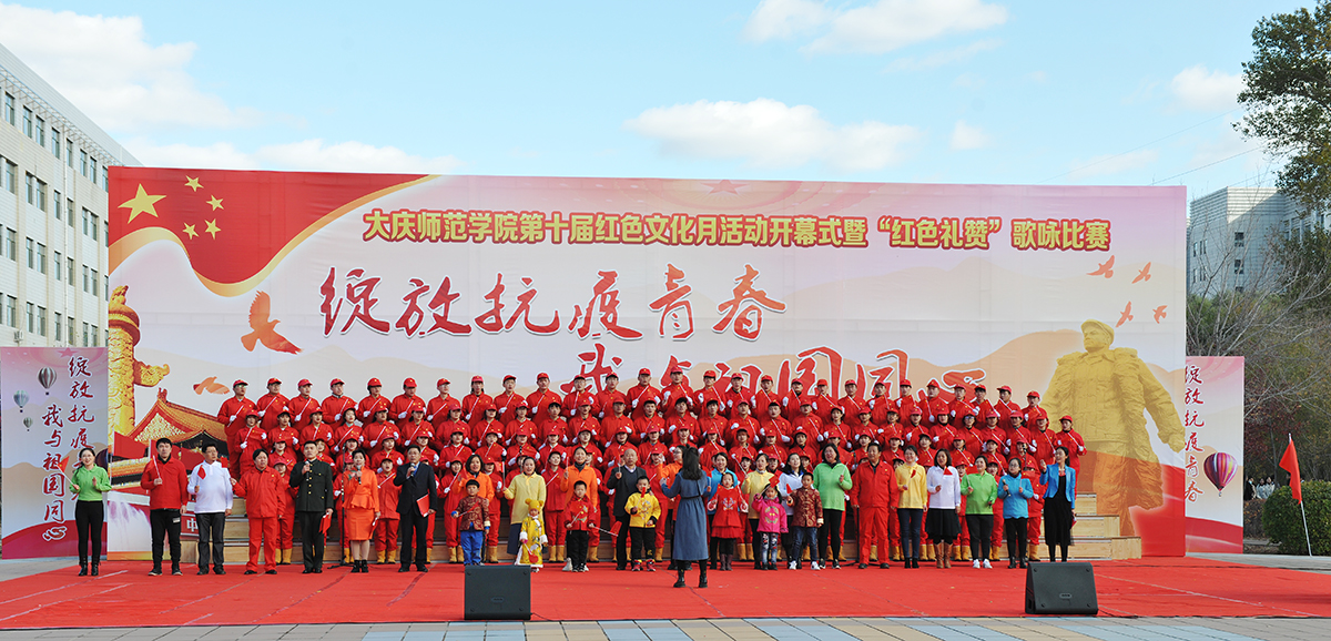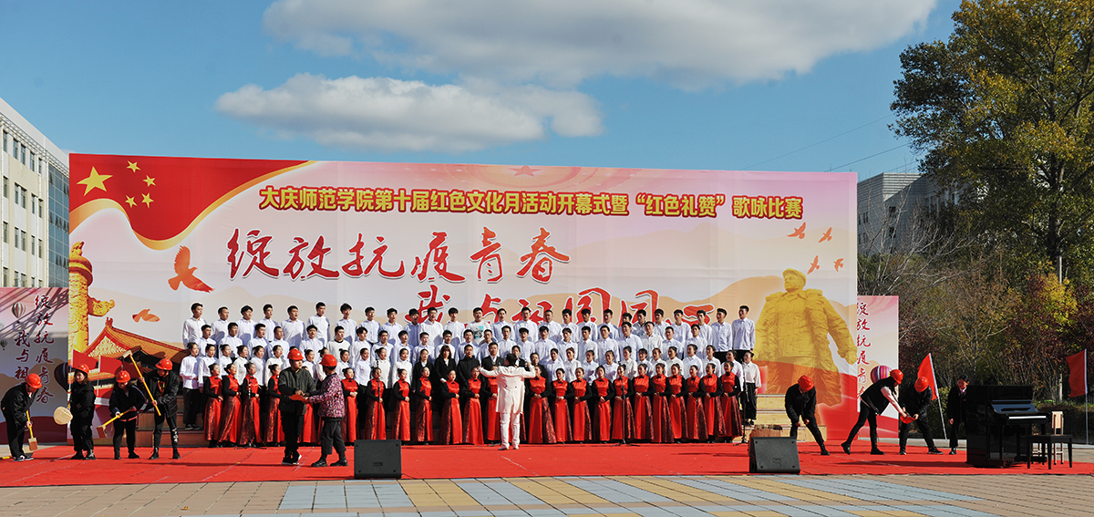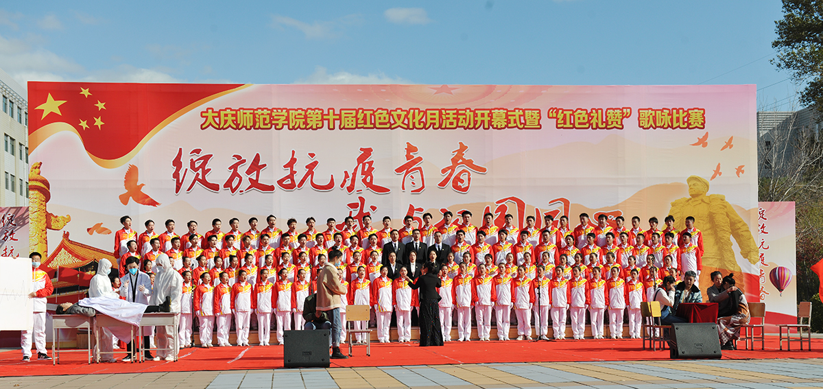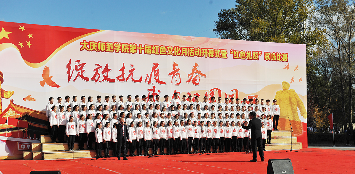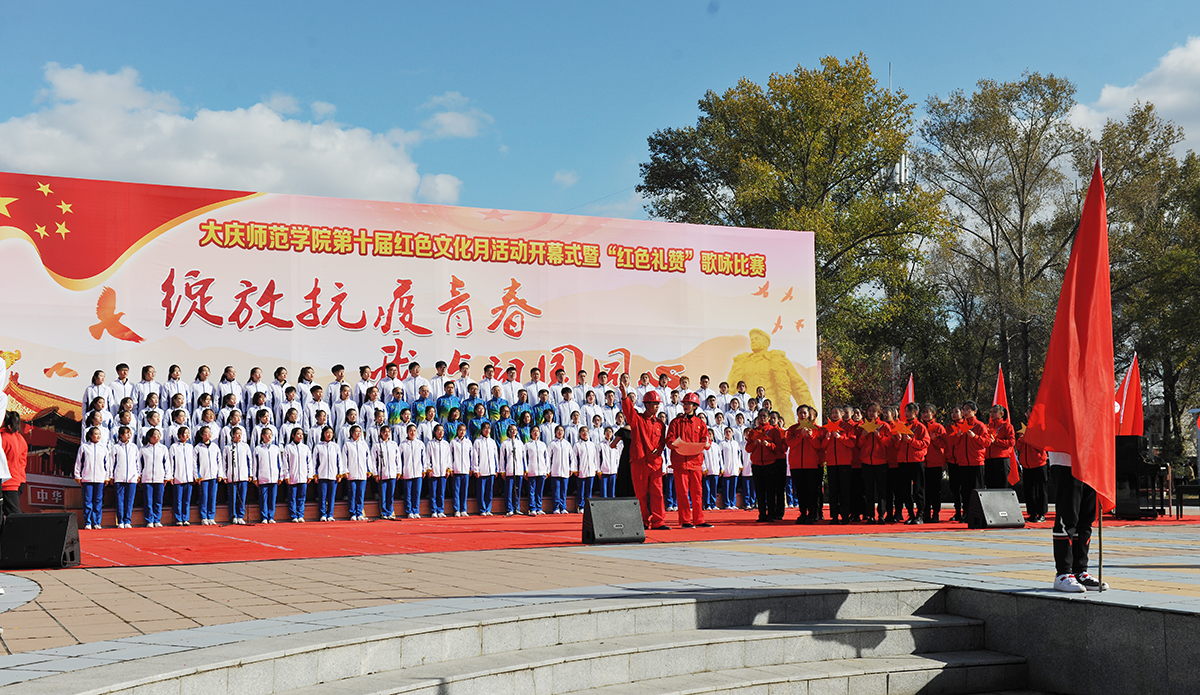 为弘扬爱国主义精神,传承发扬大庆精神铁人精神,重温红色经典,增强我校师生的凝聚力,10月14日,由校团委主办的第十届红色文化月活动开幕式暨“绽放抗疫青春 我与祖国同心”歌咏比赛在我校音乐广场举行。党委书记徐克明、党委副书记王革、副校长刘恒、工会主席徐晓东等校领导以及各机关部门领导、各二级学院师生约两千八百人一同观看了演出。
