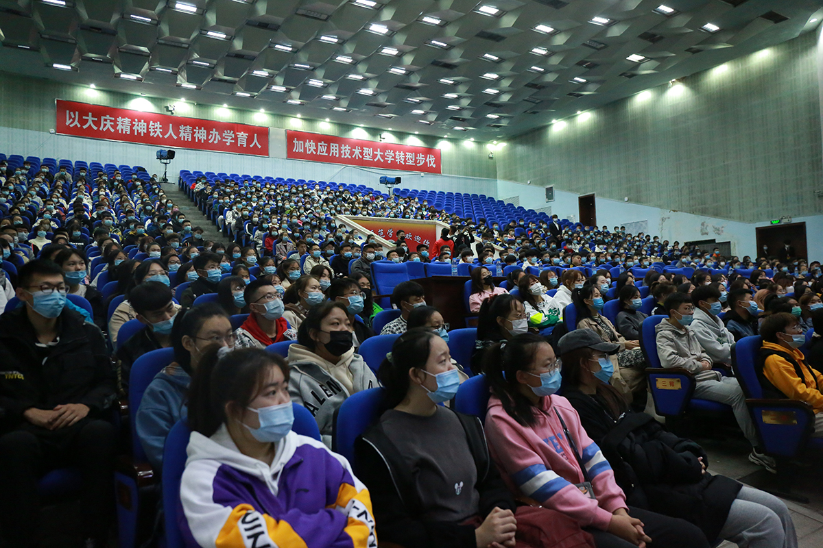 我校马克思主义学院陈立勇老师、张文彬老师分别以《弘扬铁人精神传承红色基因》《铁人精神精讲·学经典悟精神》为题,对铁人精神的内涵做了详细的阐述,使同学们重温铁人英雄的动人事迹,感悟铁人精神的强大力量。他们鼓励同学们要珍惜时光,加倍努力学习,掌握过硬的本领,争做铁人式的社会主义建设者和接班人。为提升学生安全意识,我校安全保卫处盖立庆老师以《2020年安全法制教育》为题,主要从新生刚刚步入大学生活所面对的新的学习环境、生活环境、管理环境、新的人际环境等几个方面对新生进行了引导,以及近年来高校中的多发案例警示同学们不要轻信陌生号码或信息,不随意泄露个人信息,以免落入诈骗分子的圈套。