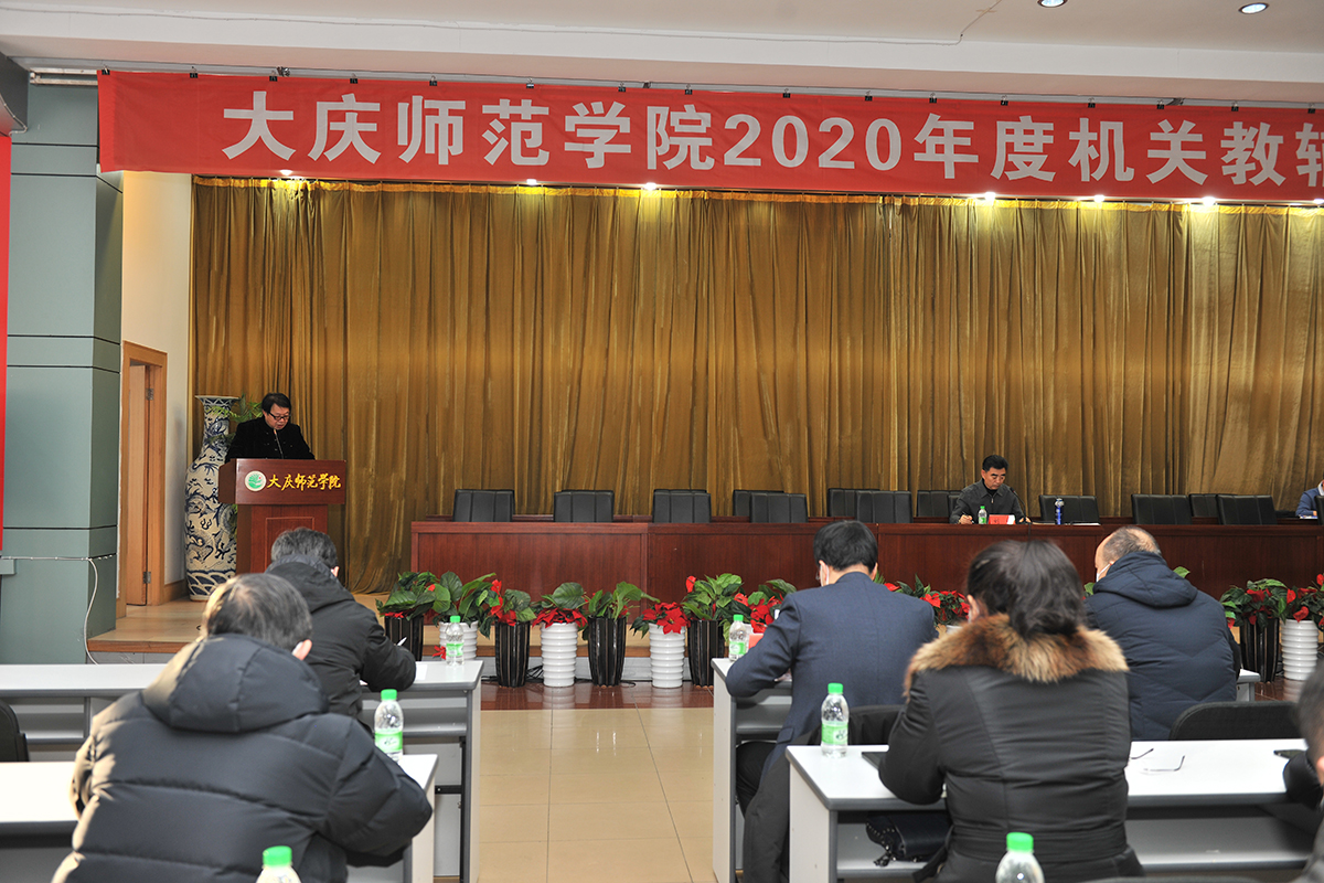 12月25日,学校在铁人讲堂召开校直机关、教辅单位2020年度业绩述评会。