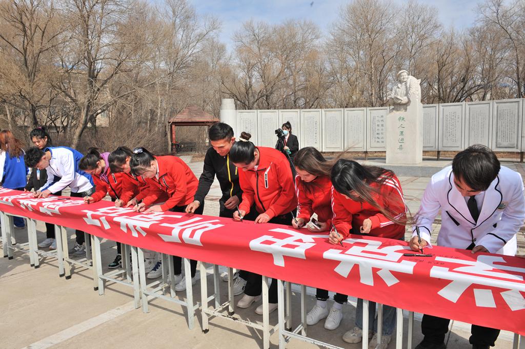 签名活动在铁人王进喜塑像前举行。活动上,全体新疆籍学生及新疆籍辅导员在“学党史、听党话、感党恩、跟党走”签名标语上签名留念,以此表达了爱国爱党之情,全体新疆籍师生共同发出了庆祝中国共产党成立100周年,学党史、听党话、感党恩、跟党走的祝福感言。