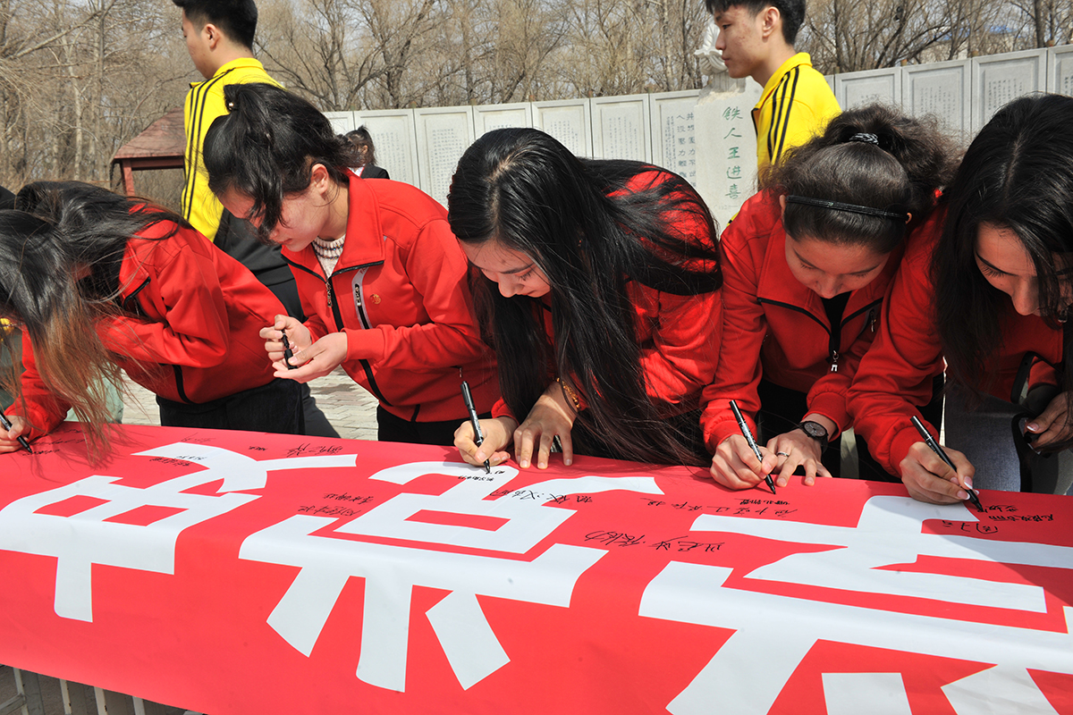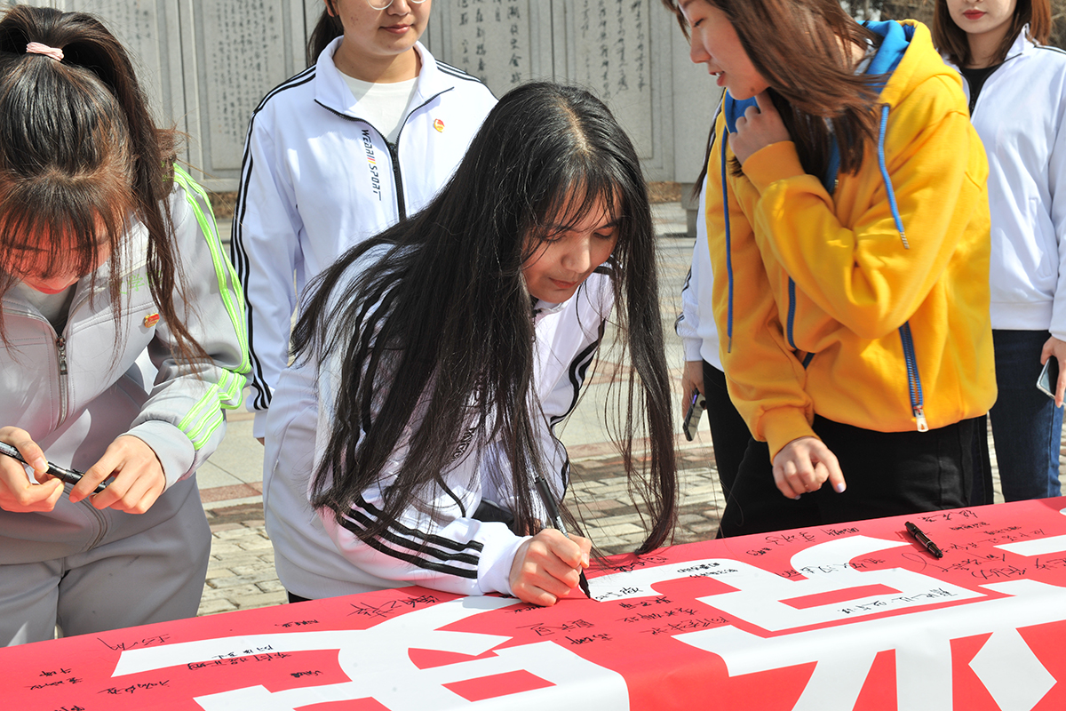 为了庆祝建党100周年,深入学习贯彻习近平总书记在党史学习教育动员大会上的重要讲话精神,3月31日,我校举行了“学党史、听党话、感党恩、跟党走”新疆籍学子红心向党签名活动。