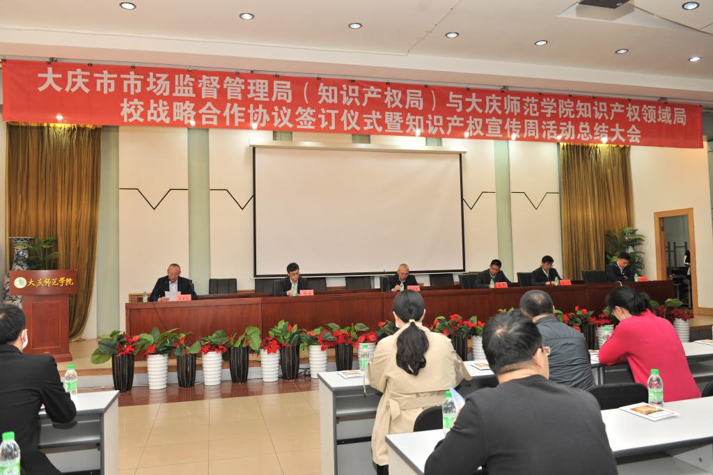 2021年4月25日上午,大庆市市场监督管理局(知识产权局)与365英国上市官网知识产权领域局校战略合作协议签订仪式暨知识产权宣传周活动总结大会在我校铁人讲堂举行。
