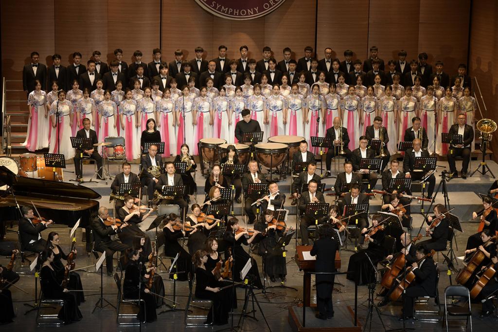 本场音乐会洋溢着浓浓的爱国主义情怀,当第七乐章《保卫黄河》磅礴有力的旋律响起,现场观众全体起立,随声高唱“风在吼,马在叫,黄河在咆哮,黄河在咆哮”……振聋发聩、激昂高亢的歌声响彻全场,将音乐会推向了高潮。