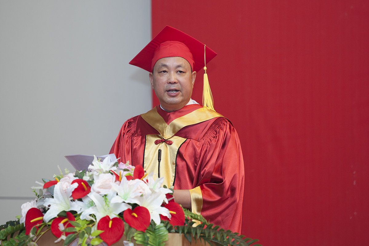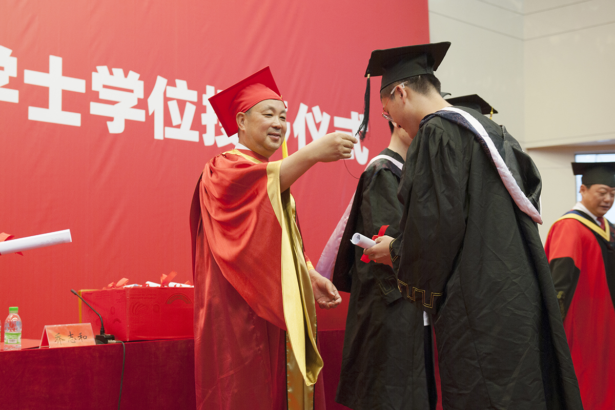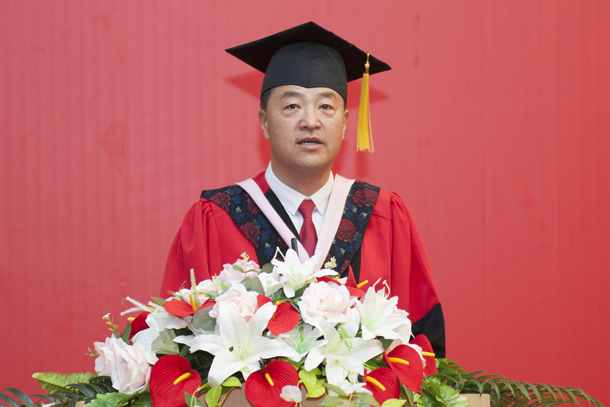校长、校学位评定委员会主席乔志和教授致辞。他代表学校向全体毕业生送上最诚挚的祝贺和最美好的祝愿,向满腔信任、积极支持学校工作的家长朋友们致以最诚挚的感谢,向辛勤耕植,始终倾心教育的广大教师们致以最崇高的敬意。
