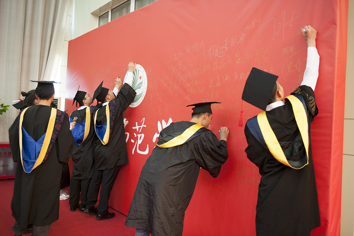 最后,校领导及学院院长一同为每一位毕业生颁发学位证书、拨流苏。