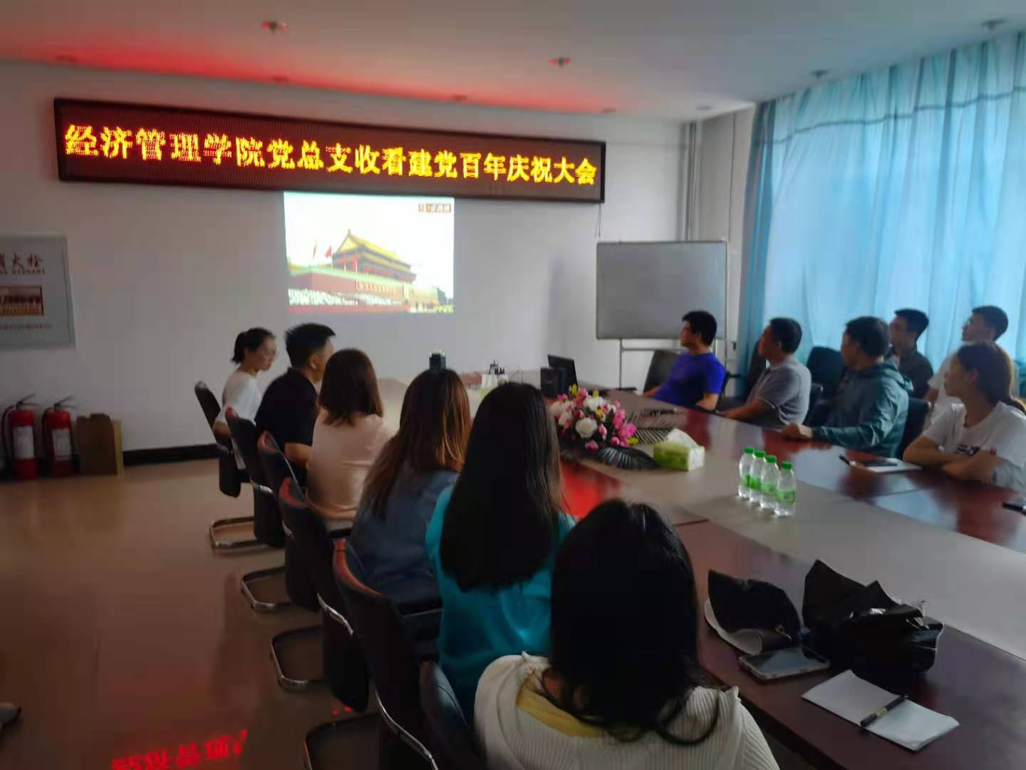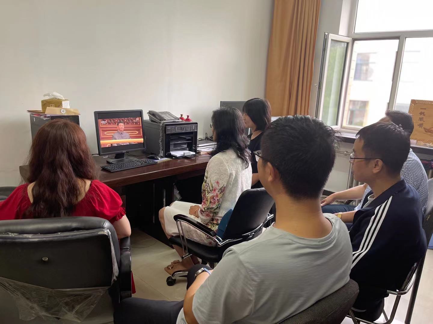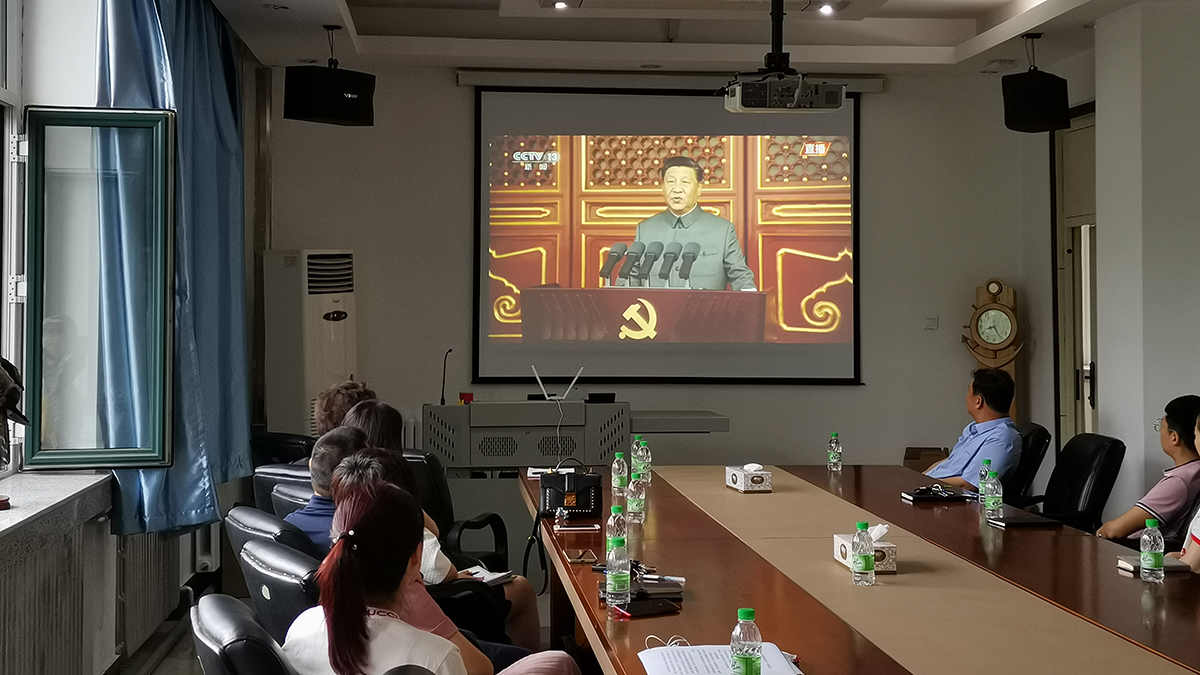 7月1日上午8时,庆祝中国共产党成立100周年大会在北京天安门广场隆重举行。我校组织学校领导班子成员、机关部门长在主楼634会议室集中观看直播盛况,机关各部门、基层各单位采取集中与分散相结合、线上与线下相结合等多种形式组织师生观看。
