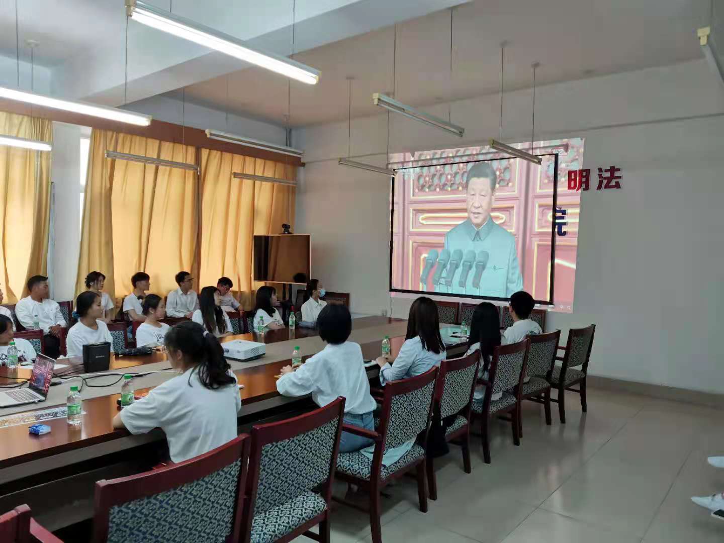 在观看直播中,党员干部、师生们情绪饱满、精神振奋,大家跟随习近平总书记饱含深情又振奋人心的讲话,回顾了中国共产党百年奋斗的光辉历程,展望了中华民族伟大复兴的光明前景。