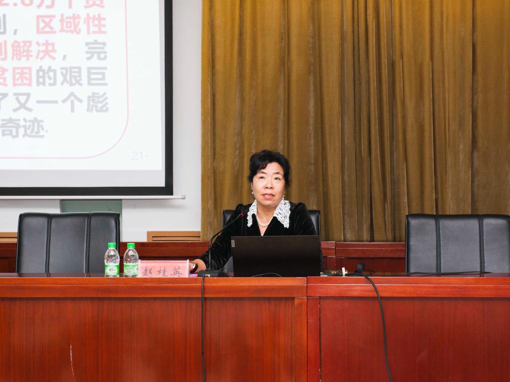 赵桂英书记紧紧围绕深刻把握习近平总书记“七一”重要讲话的重大意义、深刻领会习近平总书记“七一”重要讲话的丰富内涵、全面落实习近平总书记“七一”重要讲话的实践要求这三个方面,对习总书记“七一”重要讲话精神的丰富内涵、精神实质作了全面阐述和系统讲解,深刻阐释了中国共产党百年来的奋斗的光辉历程和历史性贡献,对我们深刻理解和精准把握习总书记“七一”重要讲话精神具有十分重要的推进作用。