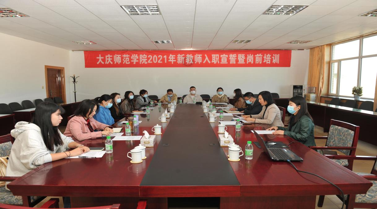 为帮助新入职教师更好地了解学校的校史、校规、校情,培养良好的职业道德和敬业精神,提高专业素养和教学科研能力,尽快适应和胜任高校教师岗位工作,10月8日上午,我校在主楼634会议室举行了2021年新教师入职宣誓暨岗前培训开班仪式,副校长张平、教师教育学院负责人张晓梅以及培训班全体学员参加了开班仪式。