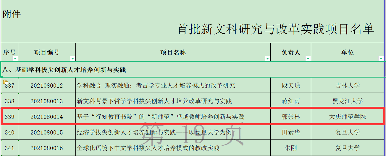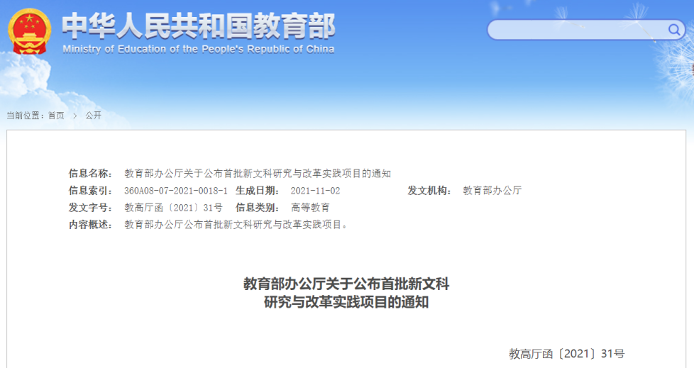 日前,教育部办公厅、省教育厅分别发布了首批国家级和省级新文科研究与改革实践项目立项结果。首批国家级新文科研究与改革实践项目立项1011项,我省有26个项目入选,郭崇林副校长主持的《基于“行知教育书院”的“新师范”卓越教师培养创新与实践》荣列其中;首批省级新文科研究与改革实践项目立项113项,郭崇林副校长主持的《基于“行知教育书院”的“新师范”卓越教师培养创新与实践》获批重点项目、美术与设计学院张立翔教授主持的《新文科背景下“美育通识教育大讲堂”课程建设的创新实践》获批一般项目、张平副校长主持的《新文科背景下地方应用型本科高校教师教学发展中心建设研究与实践》获批培育项目。