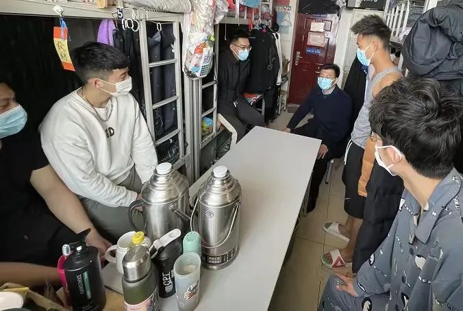 因当前疫情形势严峻复杂,根据属地管理要求,为了守护师生健康,学校实施封闭管理,部分教工与学生同吃同住同学习,紧密相依、共克时艰,学管队伍作为学校防控政策的执行者、作为最贴近学生的知心人,将疫情防控的实际行动同思想政治教育相融合,守好学生公寓主阵地,学校的“关爱使者”们,将初心写在行动上,使命落在岗位上,通过线上与学生交流谈心、线下深入走访各个寝室,及时发现、认真倾听学生们在“学业、生活、就业、心理”等方面的成长诉求,切实解决学生的愁、难、急、盼等问题。