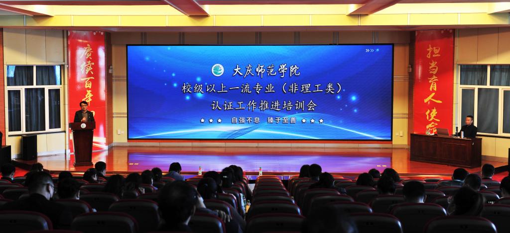 为推动学校专业认证工作深入开展,以“2022年校内专业认证工作”为契机,结合学校“能力作风建设年”活动,学校于5月11日在博雅讲堂召开了“校级以上一流专业(非理工类)专业认证工作培训(推进)会”。参与校内专业认证的12个非理工类专业及小学教育、数学与应用数学专业的学院院长、副院长、骨干教师,公共课单位教学副院长、教研室主任共计100余人参会,教务处处长徐权主持会议,郭崇林副校长做培训讲座。