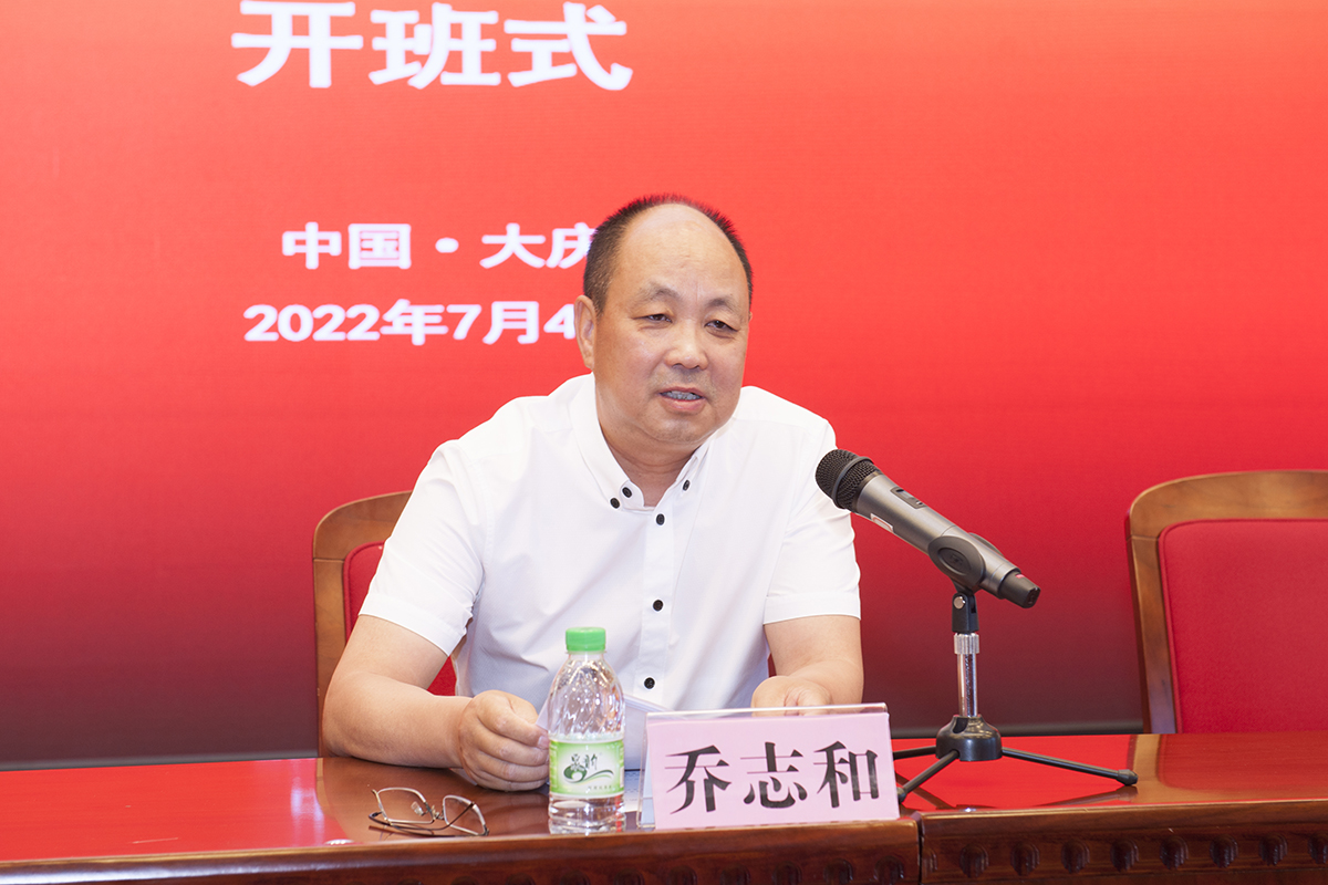 乔志和校长致欢迎词。他热烈欢迎老师们在盛夏时节,踏上大庆这片神奇土地,走近共和国这座英雄城市,开启为期7天的红色研修之旅,在铁人王进喜战斗过的地方,感受中国共产党精神谱系中——大庆精神铁人精神的力量。