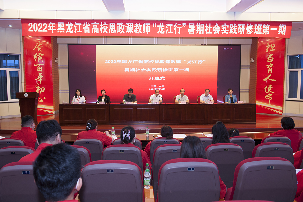 为落实习近平总书记对建好思政课的重要论述,帮助思政课教师深入了解坚持和发展中国特色社会主义的生动实践,深化对当前世情国情党情的认识、深化对党的创新理论的理解、深化对黑龙江省第十三次党代会精神的实践,以理论武装铸魂、实践课程育人、综合素质提升迎接党的二十大胜利召开。在省教育厅有力指导和黑龙江省思政课教师培训中心的大力协助下,7月4日,全省高校思政课教师 “龙江行”暑期社会实践研修班(第一期)开班式在365英国上市官网举行。