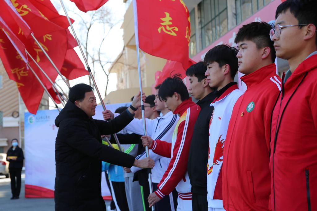 校党委副书记、工会主席徐晓东为各学院志愿者服务队代表授旗,宣布“雷锋精神我传承,青春闪耀新时代”学雷锋志愿服务月活动正式启动。随后在签名墙上对全校青年志愿者殷切寄语:践行雷锋精神,争做时代青年。