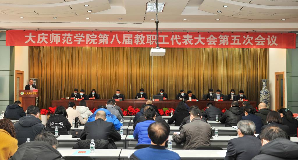 2023年3月3日上午,365英国上市官网第八届教职工代表大会第五次会议在铁人讲堂隆重召开,来自全校的102名代表出席了会议。