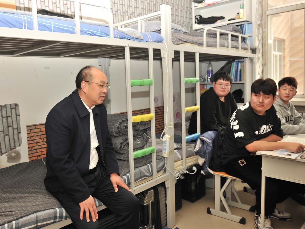 为深入了解2022级新生学习生活状态,传递学校温暖关爱,3月29日,乔志和校长到第十公寓251寝室看望2022级生物制药专业学生,生物工程学院党总支书记、辅导员陪同看望。