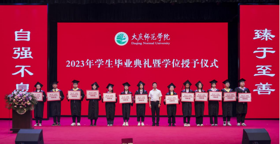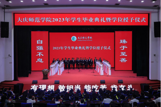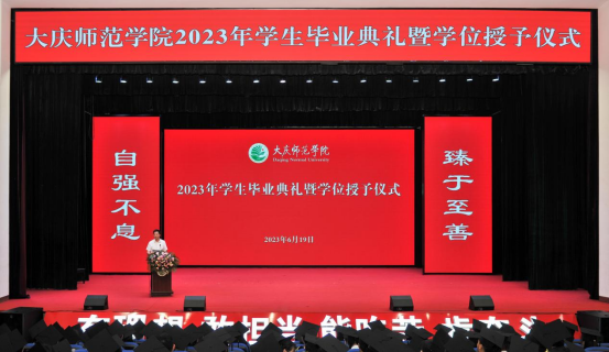 党委书记赵科学致辞。他代表学校党委和行政,向羽翼已丰,即将振翅高翔于祖国山川大地的2994名毕业生们,致以最热烈地祝贺;向满腔信任、积极支持学校工作的家长朋友们致以最诚挚地感谢;向辛勤耕植,始终倾心育人的广大教师们致以最崇高地敬意。他高度评价了四年来学生们的成长和进步并提出五点期望与毕业生们共勉。一是希望你们心怀国之大者,做一个志向高远之人。要更加坚定理想信念,自信自立自强,厚植家国情怀,勇做新时代的奋进者、开拓者和奉献者,为早日实现“中国梦”积极贡献智慧和力量。二是希望你们常怀感恩之心,做一个品格敦厚之人。自觉传承、践行和弘扬大庆精神铁人精神,无论身在哪个领域,无论身居什么职位,都能“老实做人、勤奋做事、勇于担当,乐于奉献。”始终把成为具有铁人精神特质的社会主义建设者和接班人作为自己最闪亮的底色。三是希望你们牢记学无止境,做一个本领过硬之人。坚持知行合一,守正创新,“宁要一个过得硬,不要九十九个过得去!”在全面建设社会主义现代化强国的伟大实践中进行锤炼式学习,不断练就过硬本领。四是希望你们敢于攻坚啃硬,做一个意志坚韧之人。要深刻领悟铁人“宁可少活20年,拼命也要拿下大油田”的铮铮誓言,要努力像铁人那样,坚持“干,才是马列主义”,在“有条件要上,没有条件创造条件也要上”的艰苦奋斗中,百炼成钢。五是希望你们心存戒惧敬畏,做一个胸襟坦荡之人。始终心存戒惧敬畏,才能更加深刻地看清是非曲折、看懂兴衰成败、看淡功名利禄,才能更好地做到心底无私,心胸坦荡,心系人民。赵科学书记深情寄语毕业生,这里,永远映着你们的青春,留有你们的气息;这里,永远是你们的坚强后盾和温暖的精神家园。此刻,万千祝福凝聚,母校惟愿你们:一帆风顺,前程似锦,未来可期!