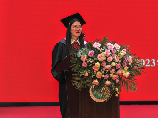 毕业生代表,教师教育学院学生、荣获黑龙江省优秀毕业生荣誉称号、学校“铁人式”优秀毕业生荣誉称号的马欣妍同学代表2023届全体毕业生向母校道别。