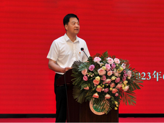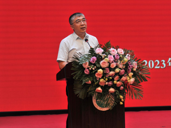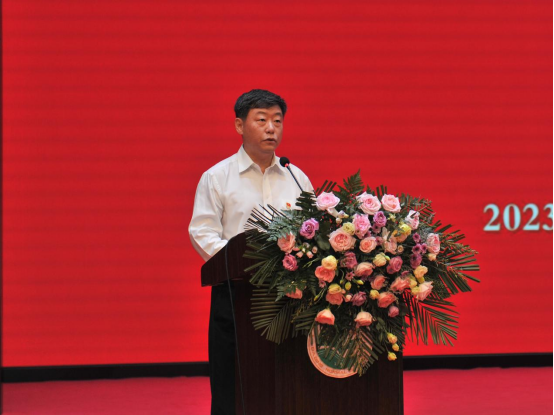 教师代表,黑龙江省委宣讲团成员、黑龙江省劳动模范、马克思主义学院陈立勇教授代表学校全体教师向2023届毕业生送上衷心的祝福。