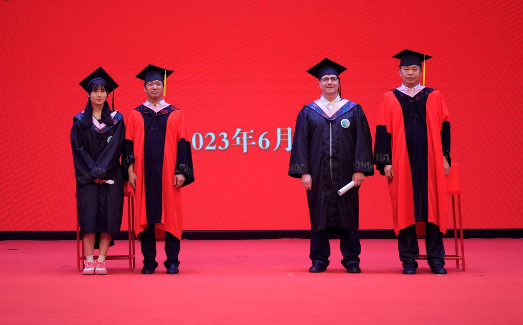 最后,党委副书记、工会主席徐晓东向毕业生致以真诚的祝福。他说:离别不是终点,小别离是为了大成长,学有所成自当报效家国人民。生逢盛世,就要不负盛世,要做与时代同向同行的奋进者,响应时代召唤,经受风雨历练,练就硬脊梁、铁肩膀和真本事。生于华夏,就要不负华夏,要做与祖国共同成长的担当者,牢记“强国有我”的铮铮誓言,以青春之我、热血之我铸就祖国之强盛、民族之兴旺、人民之安康。天高路远,山海辽阔,希望同学们在新征程上青云直上、鹏程万里,前程似锦、一路生花。