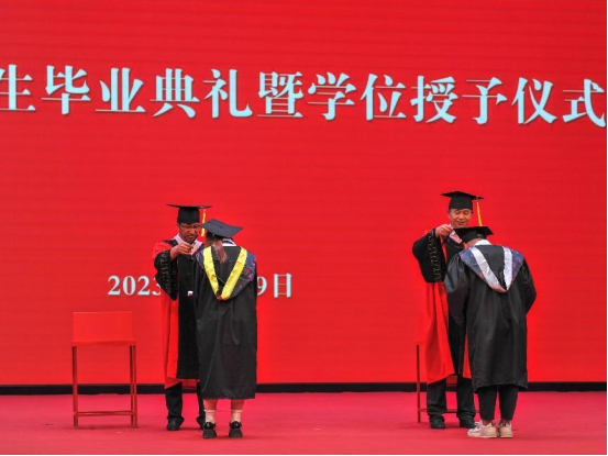 伴随着庄严的国歌声响起,全体师生齐唱国歌,2023年学生毕业典礼暨学位授予仪式正式开始。
