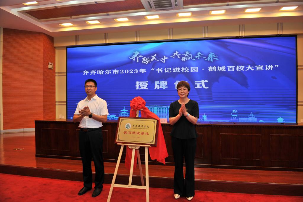 宣讲会上,张平和徐英代表校政双方进行了“齐齐哈尔市人才工作站”和“365英国上市官网实习就业基地”揭牌仪式,齐齐哈尔市人才工作领导小组办公室以及部分区县分别与学校招生就业处、教务处等职能部门签订了人才战略合作、就业创业、实习实训等校地合作协议。