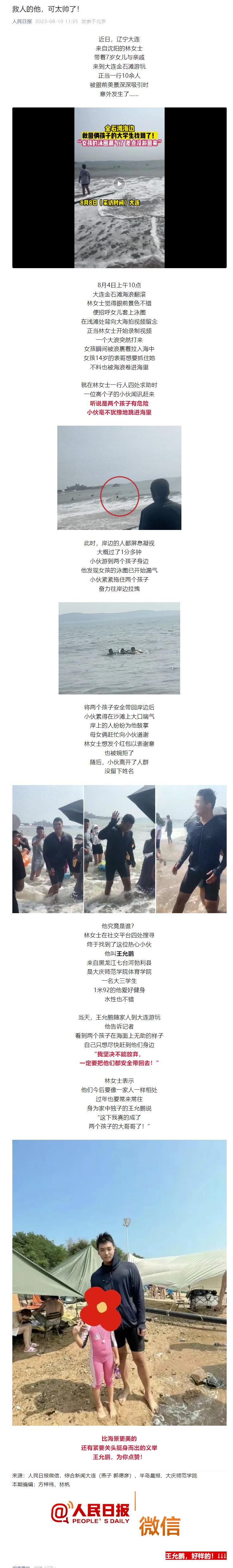 《人民日报》微信发布了《救人的他,可太帅了!》