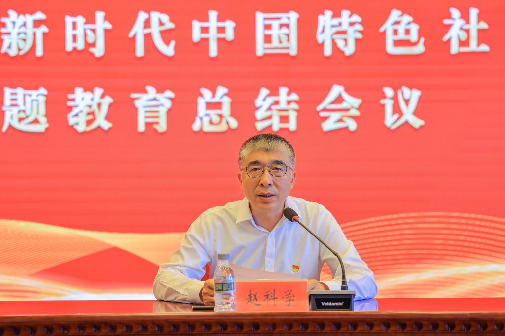 党委书记赵科学同志发表讲话,全面总结了学校主题教育开展情况、取得的成效以及今后努力方向。就巩固主题教育成效,推进学校省特色应用型本科示范高校建设提出四点意见:要持续在强化政治理论学习上下功夫,把学习贯彻习近平新时代中国特色社会主义思想作为首要政治任务,不断提高政治素养,筑牢思想信念之基;要持续在巩固主题教育成果上下功夫,注重建章立制,进一步完善体制机制,强化制度保障;要持续在深化能力作风建设上下功夫,严格落实深化能力作风建设活动各项要求,推动能力作风建设常态常效;要持续在推动学校高质量发展上下功夫,运用“四个体系”闭环工作落实机制,确保学校重点项目、各项任务落实落地落细。