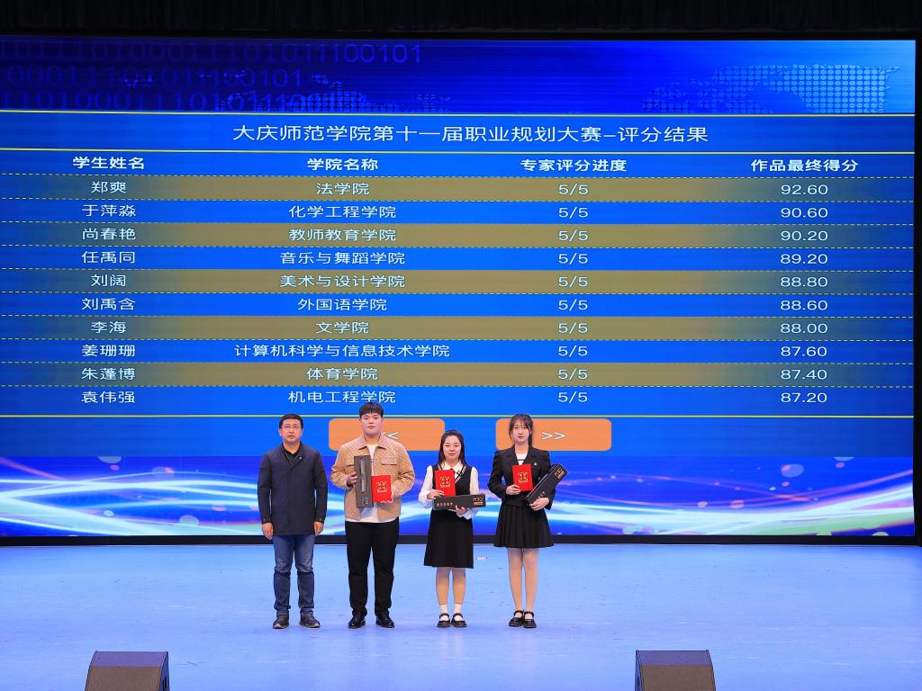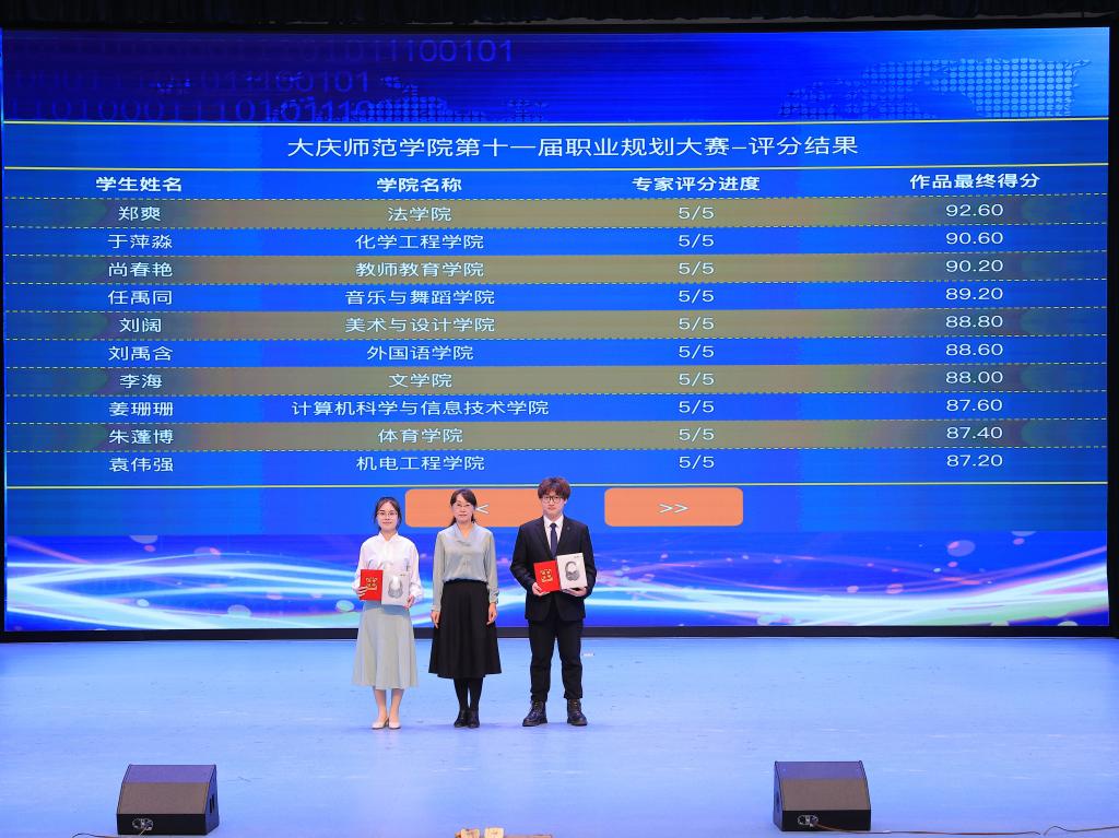 随着决赛结束,第十一届大学生职业规划大赛圆满落下帷幕。接下来,学校将组织一等奖、二等奖获得者代表学校参加黑龙江省大学生职业规划大赛。(撰稿:吴广涛 审核:张涛 编辑:姜丰翼)