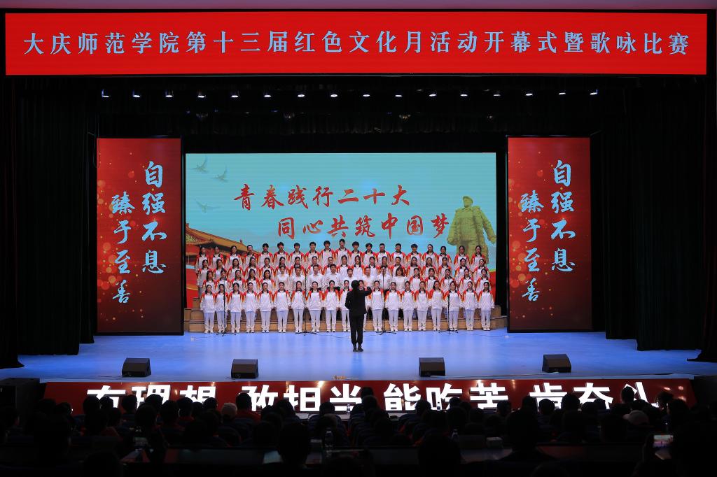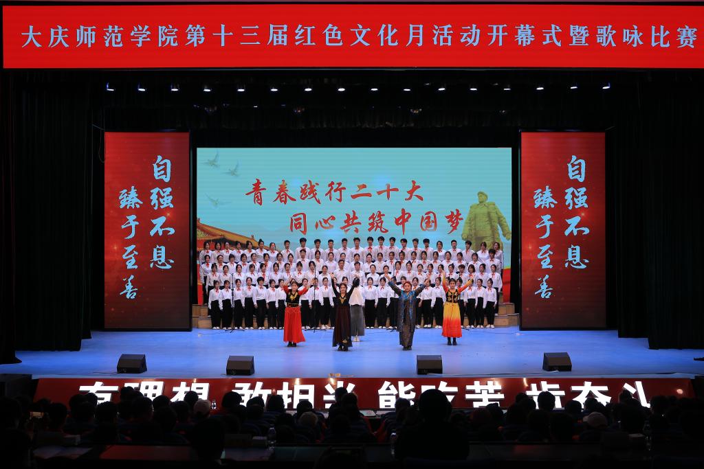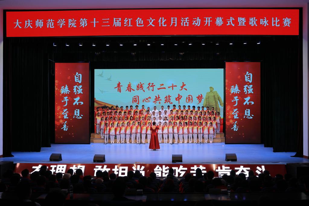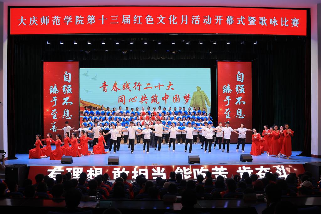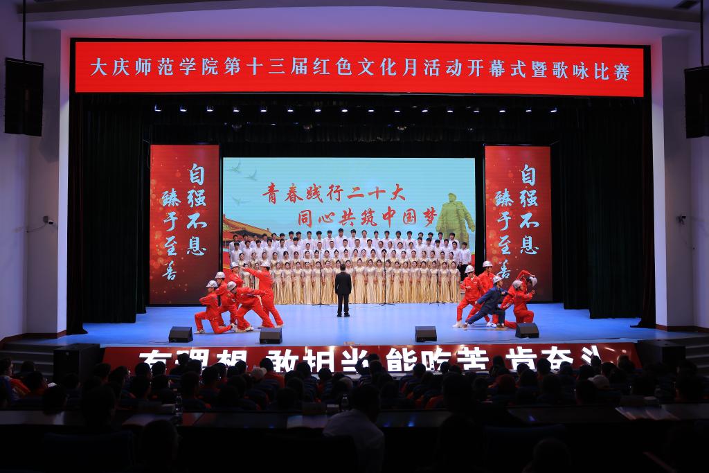 全校共13个学院的师生参加演出,开幕式在教师教育学院《最美的教育》《跟着共产党走》的歌声中拉开帷幕,师生们用深情的演唱表达了对党、对祖国、对教育事业的热爱;计算机科学与信息技术学院演唱的《我们的队伍永远强》《没有共产党就没有新中国》唱出了坚定的理想和信念;法学院的《我和我的祖国》《铁人还在我们行列》抒发了对铁人的崇敬之情;经济管理学院的《强军战歌》《国家》唱出了对祖国的美好祝福。