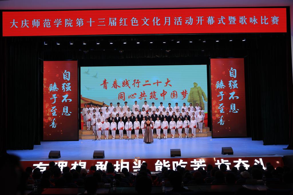 数学科学学院演唱的《踏着铁人脚步走》《我们的队伍向太阳》更加坚定了同学们的爱国爱党之情、忠国报国之志;生物工程学院的《我为祖国献石油》《当那一天来临》唱出了一代石油人奉献祖国、谱写时代新篇章的豪情壮志;机电工程学院的《我们走在大路上》《歌唱祖国》唱出了庆师青年对祖国的热爱;外国语学院的《祖国不会忘记》《今天是你的生日》歌颂了祖国繁荣昌盛。