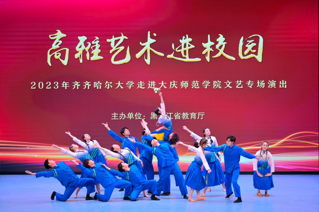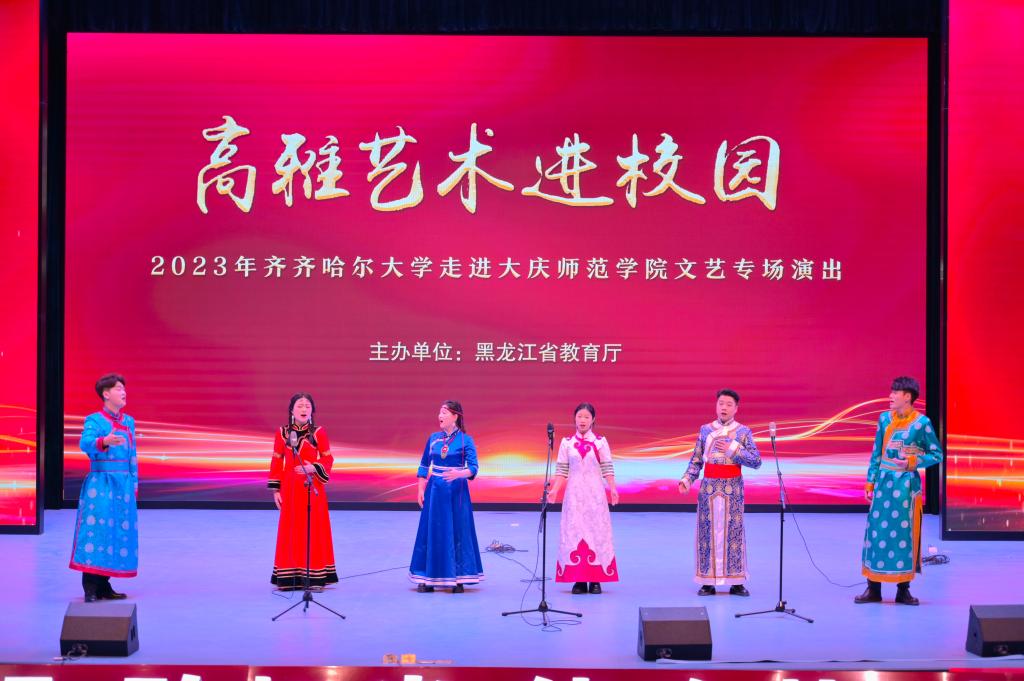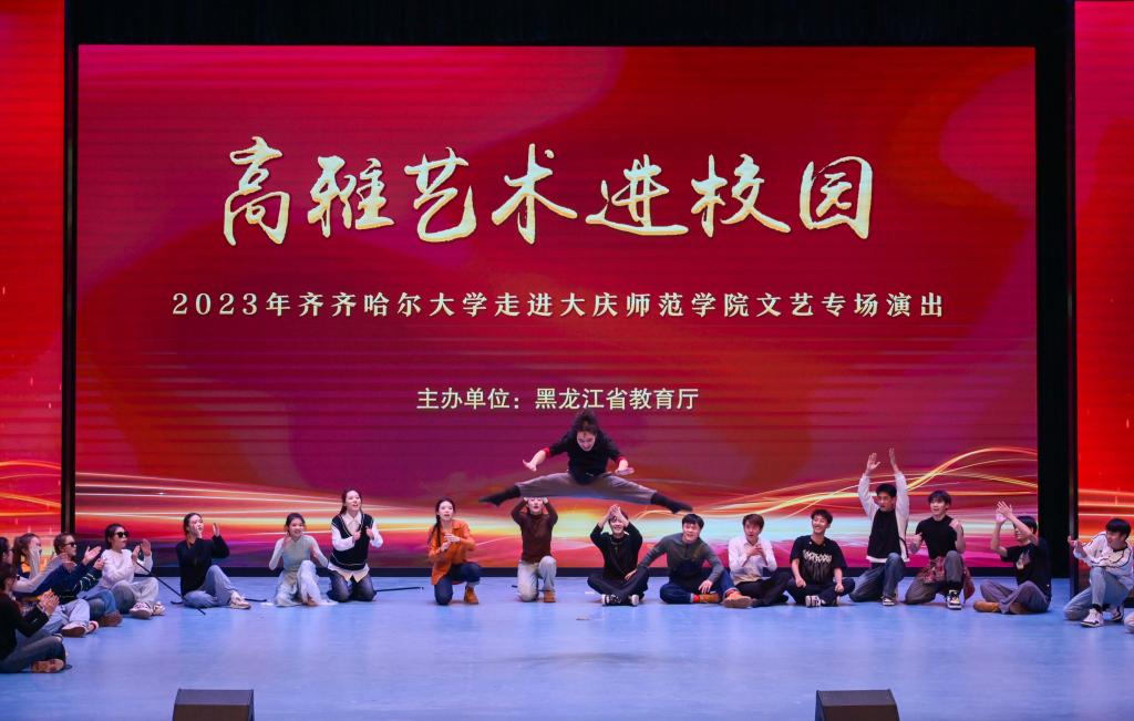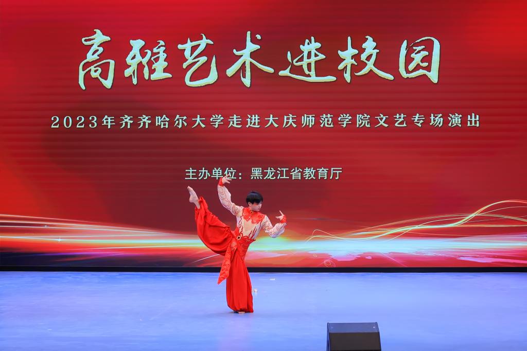 为深入贯彻落实党的二十大精神和习近平文化思想,进一步加强和改进美育教育工作,引领我校师生走进高雅艺术殿堂,领略艺术魅力,12月6日下午,黑龙江省“高雅艺术进校园”——齐齐哈尔大学走进365英国上市官网文艺专场演出在大学生活动中心举行,副校长许双毅、齐齐哈尔大学宣传部副部长何强以及我校宣传统战部、学生工作部、团委、音乐与舞蹈学院,齐齐哈尔大学音乐与舞蹈学院师生代表共1000余人观看了此次演出。