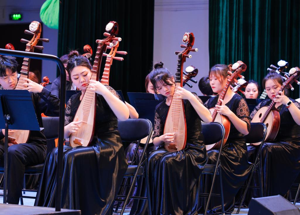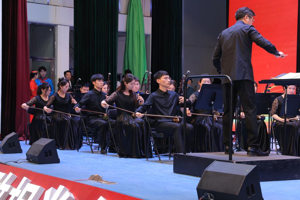 演出在气势磅礴的管弦乐合奏《节日序曲》中拉开帷幕,男女生二重唱《莫日根姐姐》、四重唱《不忘初心》圆润高亢、遏云绕梁。器乐合奏《再唱山歌给党听》深情的演绎了对党的热情拥护和美好祝愿,女生独唱《一杯美酒》、男生独唱《草原牧歌》高音嘹亮、低音浑厚、磅礴大气、沁人心脾,群舞《茉莉芬芳》、《红船》、《天堂草原》演绎经典,大气壮美,双人《四月》配合默契,惊艳全场,独舞《虞姬虞姬奈何兮》、《佤山火》舞姿优美、赏心悦目,原创无伴奏合唱歌曲《库木勒》用情感真挚的曲调,抒发了达斡尔人对库木勒的敬仰和感恩之情。一首首饱含深情的歌曲、一支支豪迈大气的舞蹈,异彩纷呈的演绎赢得了在场师生阵阵热烈的掌声,演出在轻松欢快的群舞《爷爷奶奶们》中落下帷幕。