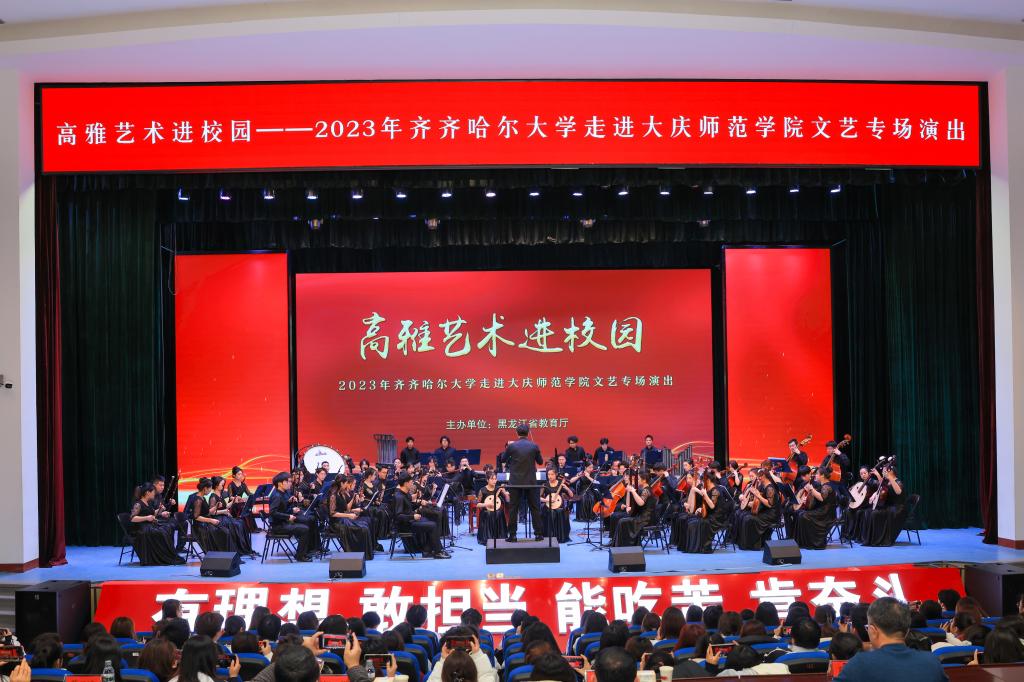 此次“高雅艺术进校园”——齐齐哈尔大学走进我校文艺专场演出为庆师学子呈现了一场精彩绝伦的视听盛宴,使学生获得高雅艺术的熏陶,切实提高了学生的审美情趣和人文素养。校团委将继续把高雅艺术进校园活动作为美育培根铸魂的重要载体,为青年学生“走进音乐、感受经典、陶冶情操、提高修养”搭建平台,用艺术缤纷校园,用美育助力庆师青年成长。(来源:团委 撰稿:吕金凤 审核:张芮荧 编辑:姜丰翼)