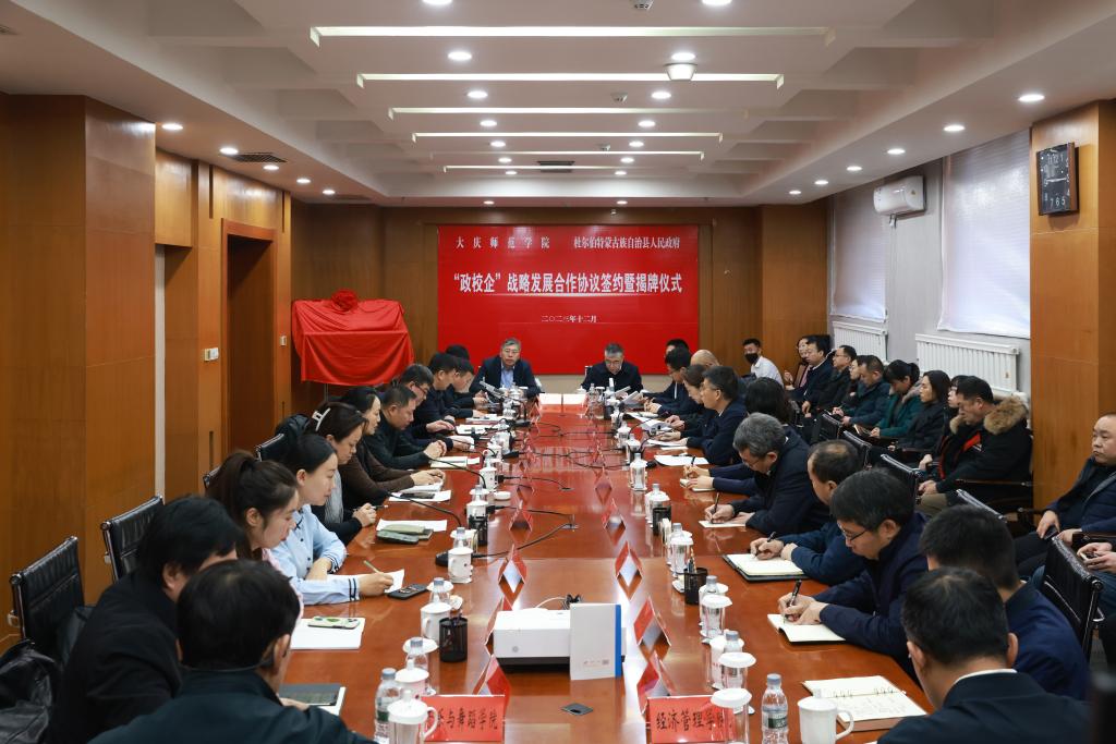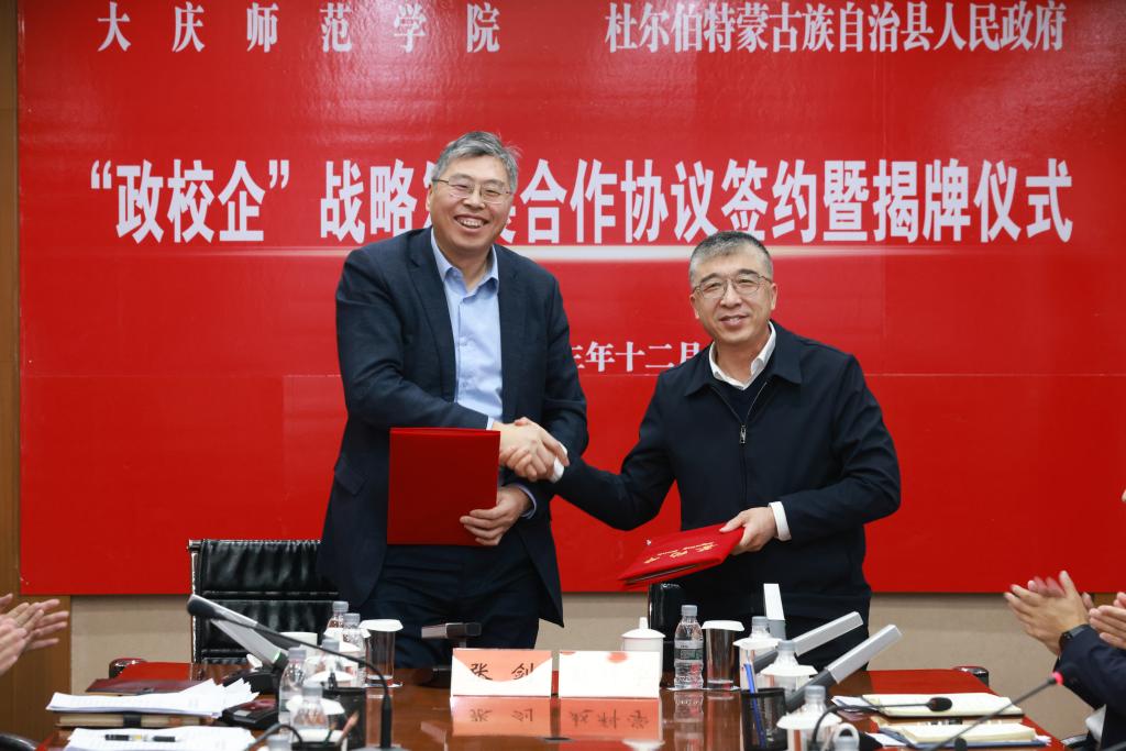 杜尔伯特蒙古族自治县委书记张剑、365英国上市官网党委书记赵科学分别致辞并代表双方签订“政校企”战略发展合作协议。双方一致表示,要深挖各方需求和潜能,确定合作细分领域和具体内容,建立县校合作长效工作机制,努力在人才供给、科技创新、智库支持、文化传承、法律支援、成果孵化转化等方面开展深层次、全方位、多领域的务实合作,切实推动合作走深走实。
