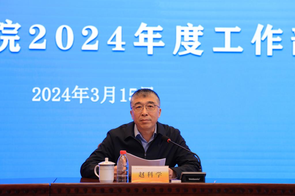 党委书记赵科学发表讲话。他全面总结了2023年学校各项工作取得的突出成绩,充分肯定了全体教职工为学校发展建设作出的积极贡献,客观分析了学校当前面临的发展形势,周密部署了2024年学校的重点工作任务。