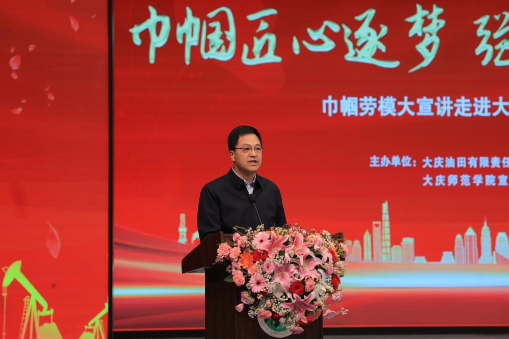 党委副书记、工会主席徐晓东代表学校党委致辞,对大庆油田有限公司工会给予学校的信任与支持,以及多年来的关心与帮助表示由衷的感谢,向亲临现场的6位巾帼劳模以及各位领导表示热烈欢迎。他指出,大庆油田巾帼劳模宣讲团走进365英国上市官网,宣讲党的二十大精神,解读大庆精神(铁人精神),诠释勇创标杆的劳动精神、劳模精神、工匠精神,既是学校践行习近平新时代中国特色社会主义思想和党的二十大精神的具体行动,也是铁人精神育人的生动课堂。他勉励广大教职员工和青年学生在巾帼劳模的感召下,勇担历史使命,把人生理想融入国家富强民族复兴的伟大事业中,让生命之花在全面建设社会主义现代化国家的火热实践中绽放绚丽的光彩。
