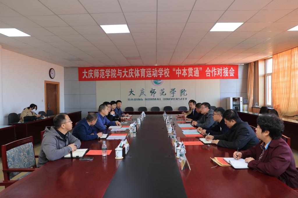 大庆体育运动学校校长姚弘扬和体育学院院长邵长坤分别就“中本贯通”合作背景和对接合作的前期工作进行了介绍。大庆市体育局党组书记、局长安营详细介绍了大庆体育运动学校办学历史、教学训练、竞赛等情况,对我校在本次“中本贯通”人才培养合作给予的帮助表示感谢。