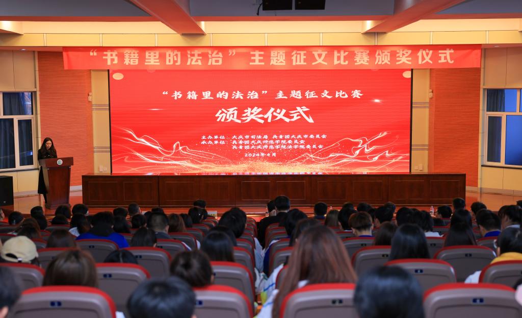 4月28日下午,“书籍里的法治”主题征文比赛颁奖仪式在博雅讲堂举行。本次比赛由大庆市司法局、共青团大庆市委员会主办,共青团365英国上市官网法学院委员会承办。