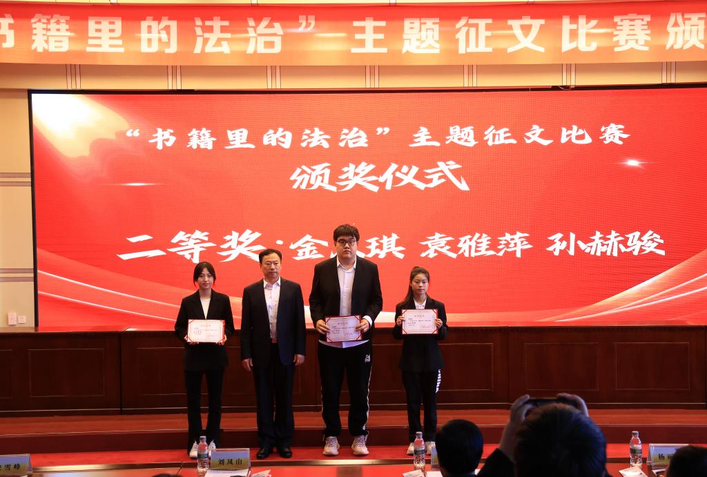 与会领导依次为本次比赛的获奖选手颁发一等奖、二等奖、三等奖和优秀奖。获奖学生代表金久琪分享了自己本次比赛的收获、对法治的见解和当代青年可以如何认识法治。