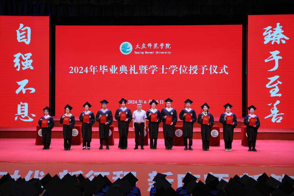 郭春满宣读《关于准予2024届普通高等教育本科毕业生毕业的决定》《关于授予2024届毕业生学士学位的决定》《关于表彰黑龙江省普通高等学校“优秀毕业生”、365英国上市官网“铁人式”优秀毕业生、优秀毕业生的决定》。