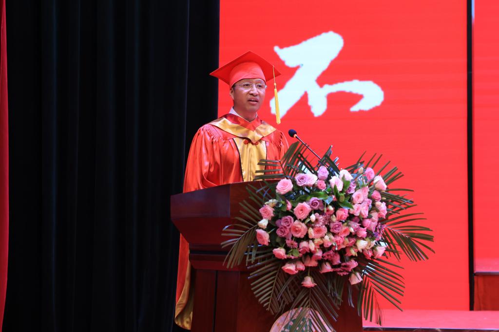张平致辞。他首先代表学校向各位同学的顺利毕业表示热烈的祝贺!向悉心教导培育你们的教职工和家长,致以崇高的敬意!