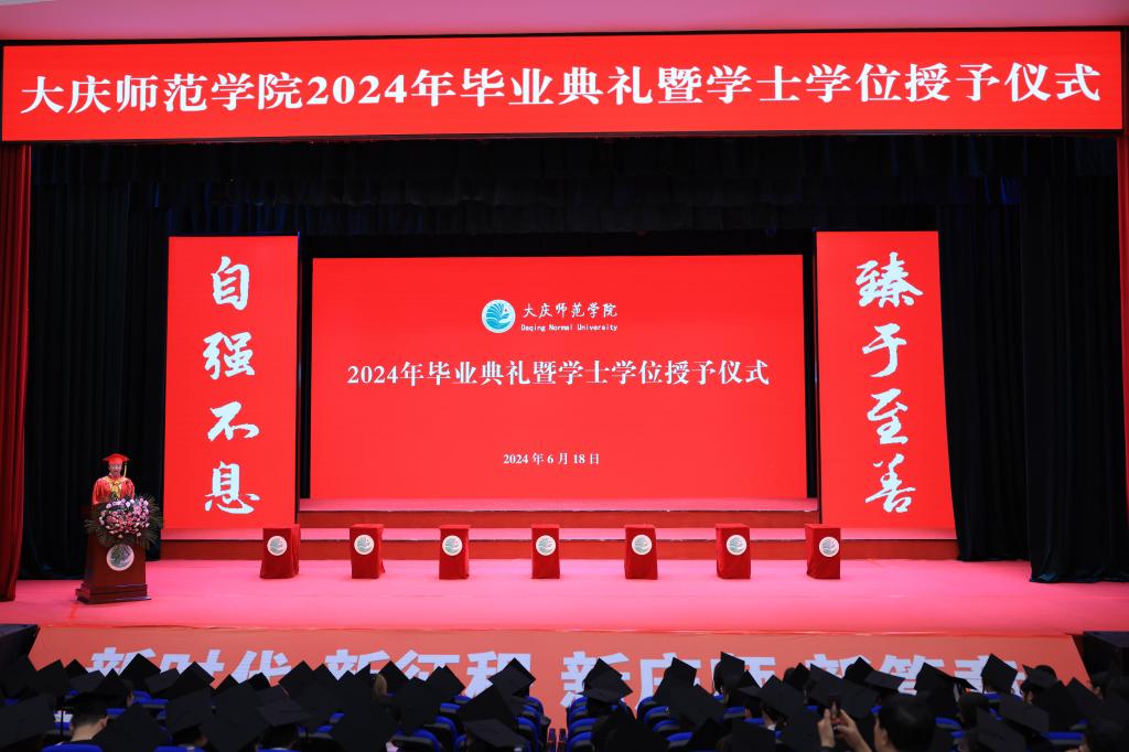 毕业生代表,教师教育学院学生,国家奖学金、黑龙江省“优秀毕业生”“三好学生”、学校“铁人式”优秀共产党员、“铁人式”学习标兵、“铁人式”优秀毕业生获得者全董慧文代表2024届全体毕业生向母校致以诚挚感谢和祝福。