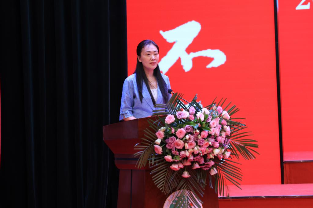 教师代表,校十佳青年,生物工程学院副院长曲丽娜博士代表学校全体教师向2024届毕业生送上以“传承”“担当”“奋斗”为主线的寄语。