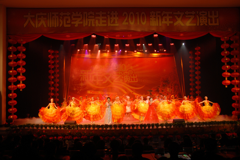 演出前,学院副院长杨锐锋同志主持了开幕式。学院院长徐克明同志向全院师生致新年贺辞。他首先代表校党委和学校,向为学校发展建设做出重要贡献的离退休老同志,向勤奋工作、刻苦钻研的老师们、同志们和同学们致以节日的祝福和诚挚的慰问。他说,即将过去的2009年,是不平凡的一年。在这一年里,我们深入开展学习实践科学发展观活动,更加清晰地认识了本科办学规律。认真贯彻黑龙江省高教强省建设规划,在新的历史起点上全面推进内涵建设,为创建精品、特色地方学院扬帆起航。一年来,学院坚持以科学发展观为统领,以构建和谐校园为追求,以全面提升教育教学质量为根本,以增强社会服务能力为主线,取得了显著成绩。最后,徐校长指出,回首过去,我们为成绩而自豪,但我们更清醒地意识到肩上的历史使命。“师院是我家,发展靠大家。”责任承载着希望,使命蕴涵着动力。在新的一年里,我们将继续秉承“自强不息、臻于至善”的校训,以黑龙江高教强省建设和百年油田创建为契机,以创新为突破口,进一步深化改革,带动学校各项事业全面快速发展,以优异的成绩迎接学校45周年华诞。