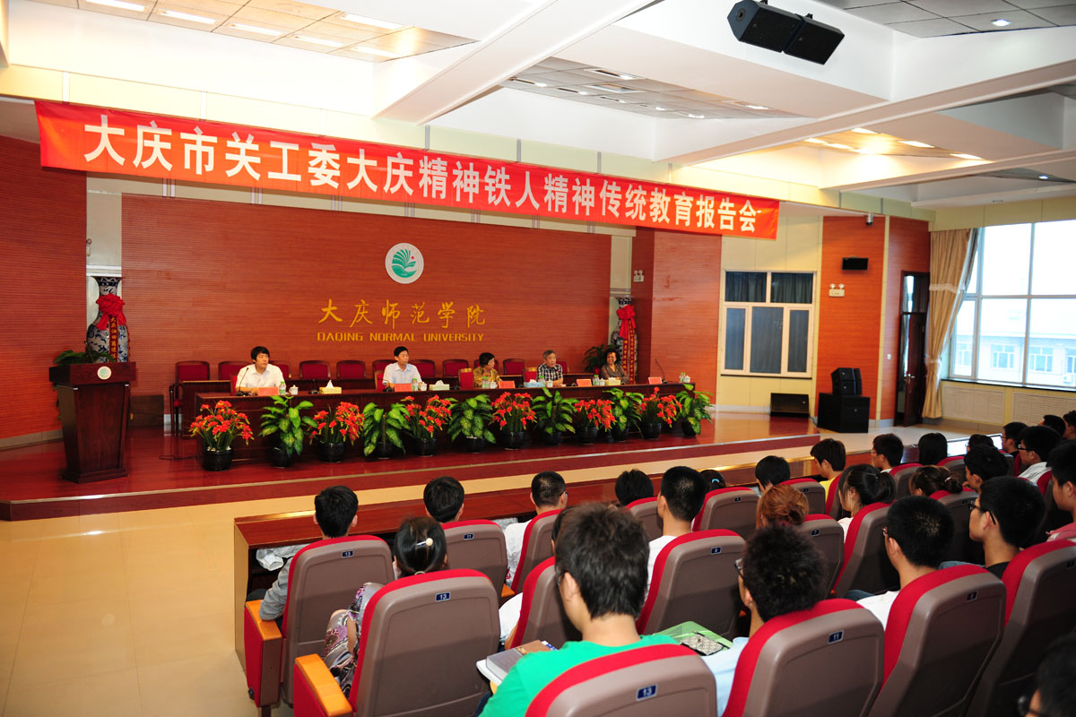 6月23日下午,为庆祝建党90周年,大庆市关工委大庆精神铁人精神传统精神报告会在我校博雅讲坛举行,市关工委副主任李长荣、炼化公司关工委常务副主任朱鼎科、校党委副书记、关工委主任贾文涛出席报告会,各二级学院师生400余人聆听了报告。